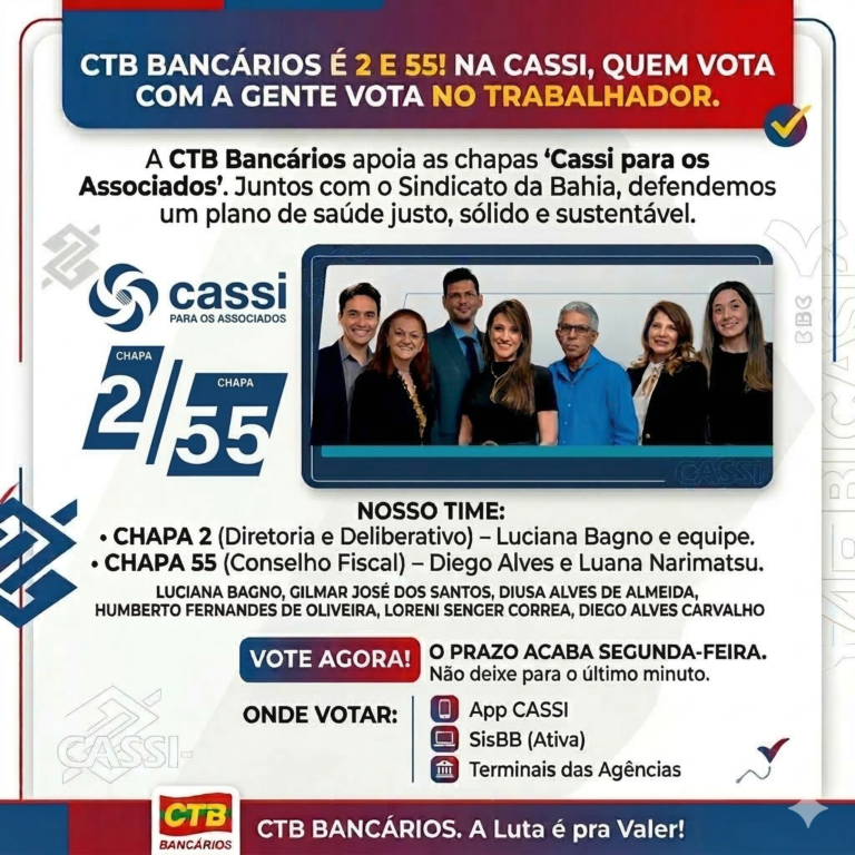 CTB Bancários com as Chapas 2 e 55: Em Defesa de uma CASSI para os Associados!