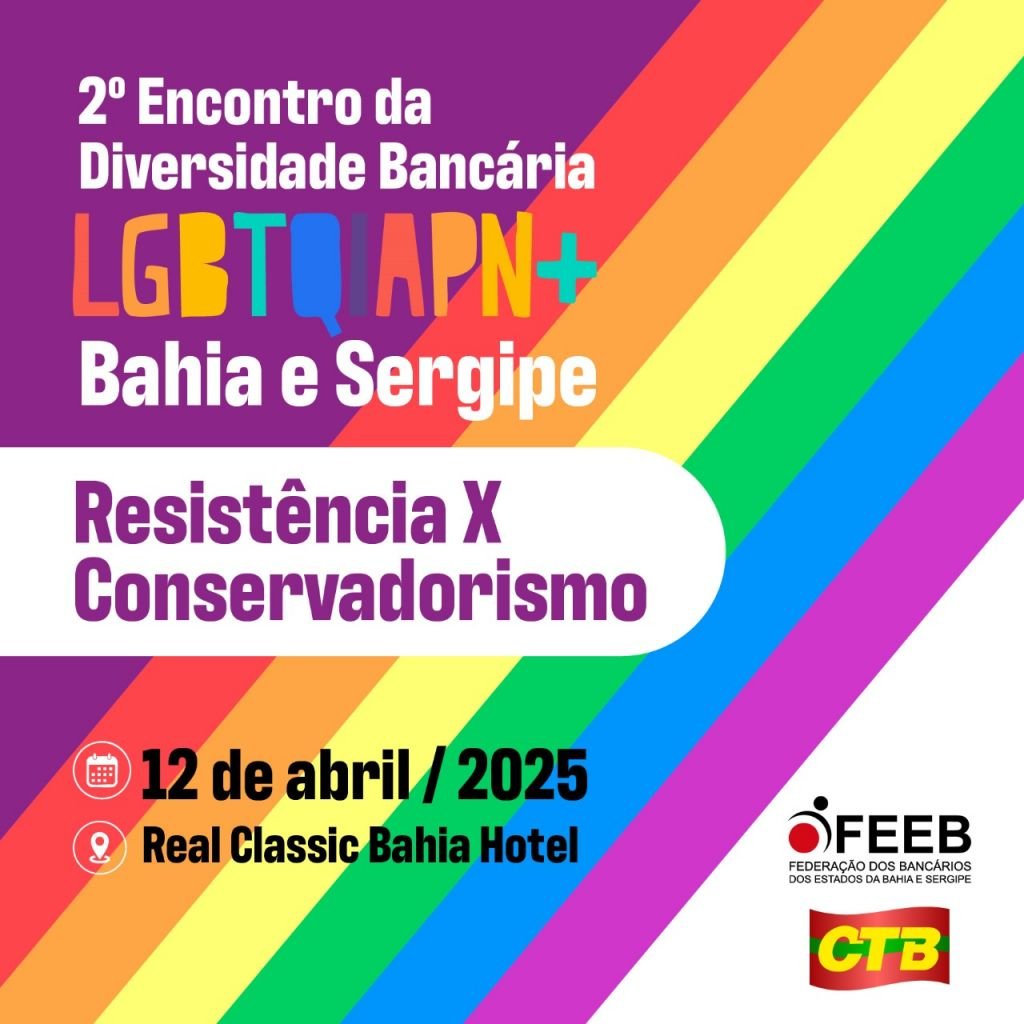 Resistência X Conservadorismo será o tema do 2º Encontro da Diversidade Bancária LGBTQIAPN+ Bahia e Sergipe, que acontece no dia 12 de abril. O evento mudou de local e agora será no Real Classic Bahia Hotel, no bairro da Pituba, em Salvador.