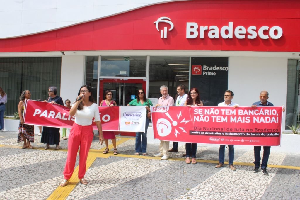 O Sindicato dos Bancários de Feira realizou uma manifestação contra as demissões e o fechamento de agências do Bradesco, somando-se ao Dia Nacional de Luta da categoria, com mobilizações em todo o país. O protesto que aconteceu na Agência 3026 localizada na Av. Senhor dos Passos.