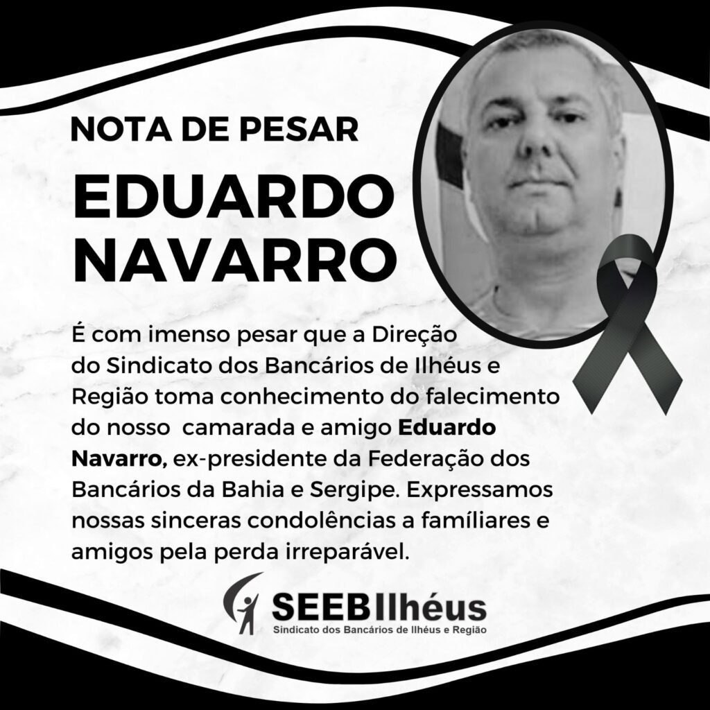 Neste momento de dor e pesar, a Direção do Sindicato dos Bancários de Ilhéus e Região se solidariza com os familiares e amigos de Eduardo Navarro, desejando forças para seguir a luta pelos ideais que ele tanto defendia.