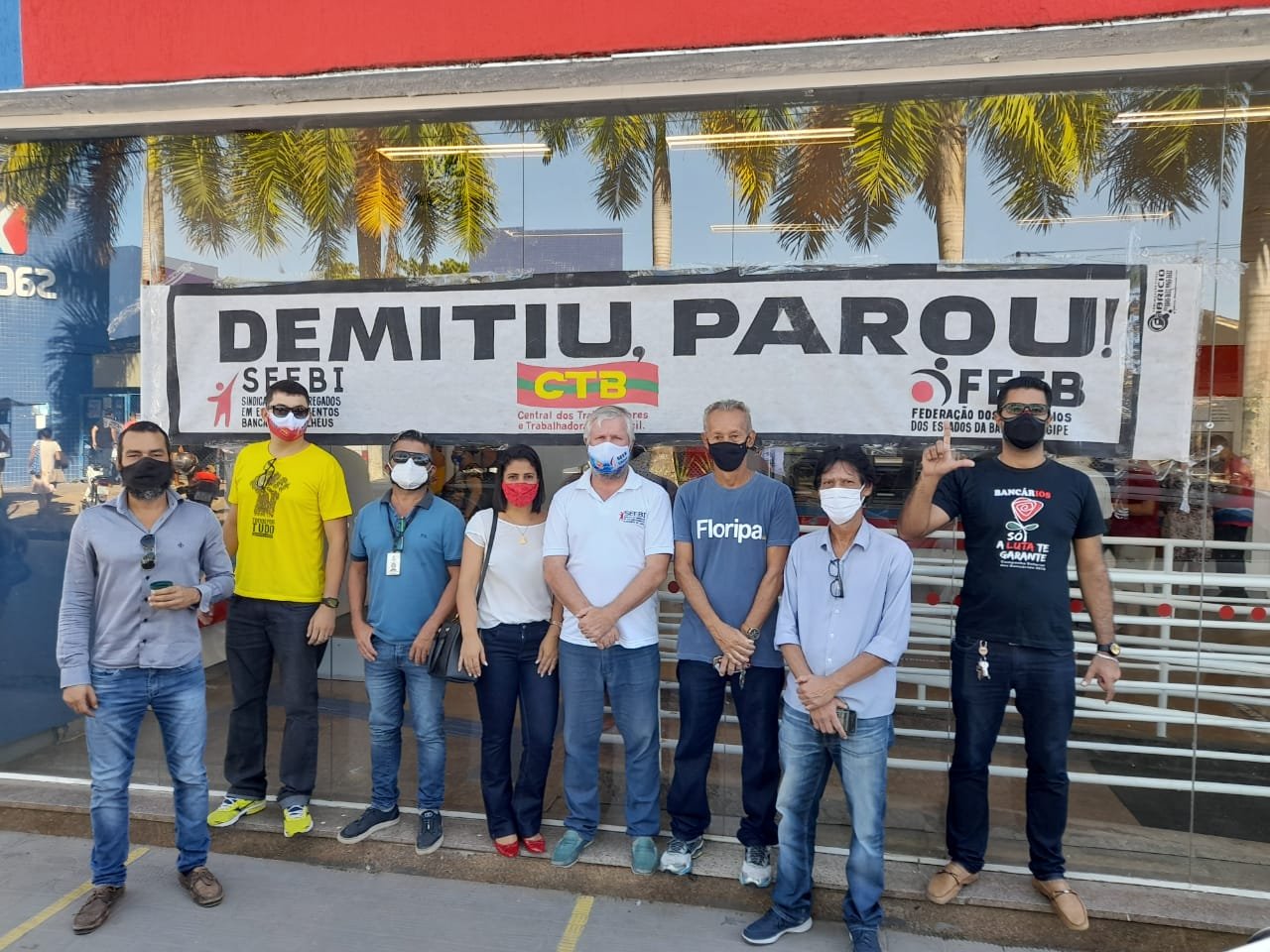 Na manhã desta sexta-feira (08), o Sindicato dos Bancários de Ilhéus fechou a agência 237 do Bradesco, em Ilhéus, em protesto contra mais uma demissão arbitrária.