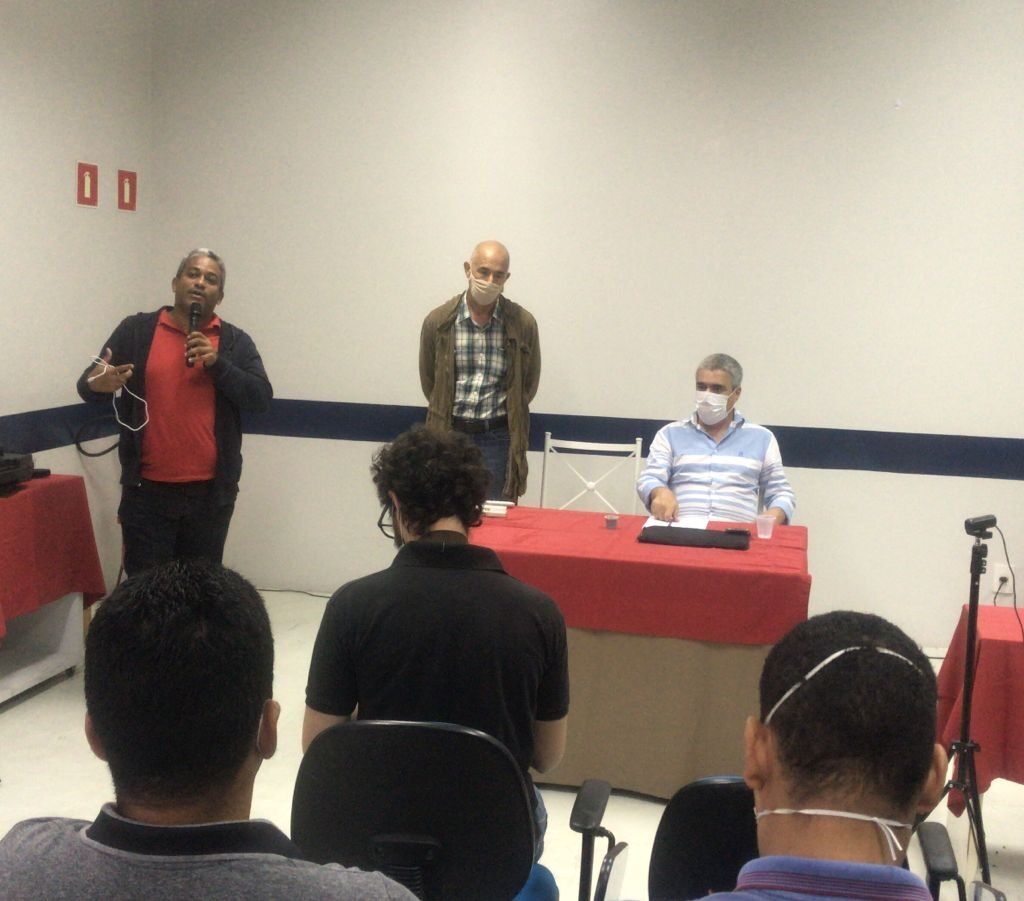 No último sábado (09), dirigentes do Sindicato dos Bancários de Ilhéus participaram do Ciclo de Debates: Comunicação, Cultura e Geopolítica, com o sociólogo, escritor e analista internacional Lejeune Mirhan e o jornalista, professor e Editor da Revista Princípios, Fábio Palácio.