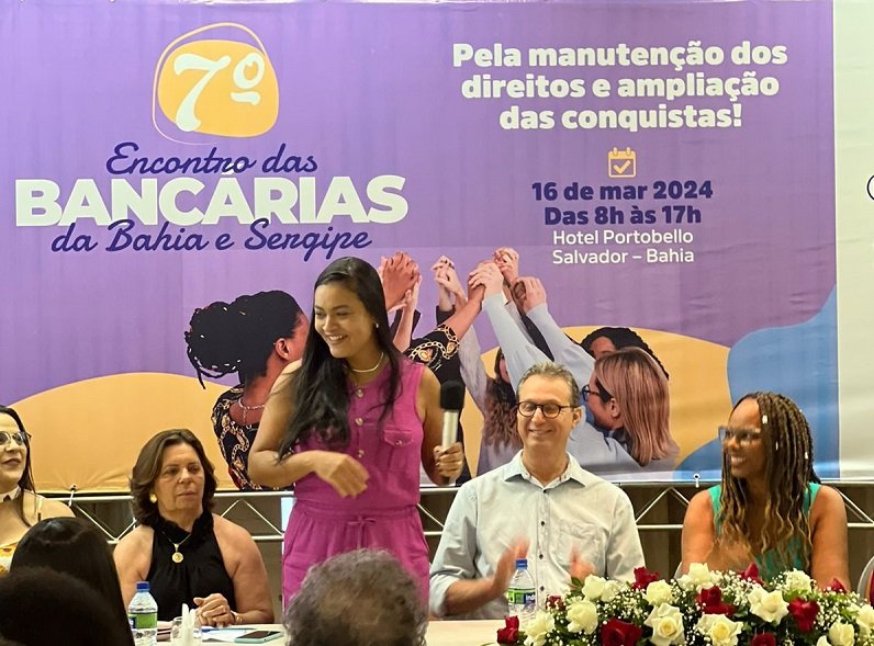 “Acredito que esse evento foi um dos melhores, porque tivemos a preocupação em trazermos uma proposta diferente para as trabalhadoras bancárias. Na parte da manhã, nós focamos nas questões envolvendo o mercado de trabalho e os direitos da categoria. Entretanto, na parte da tarde nós tivemos uma outra abordagem com uma dinâmica para mostrar como a mulher se vê dentro da empresa e fora dela. E foi um momento importante porque teve a questão de valorizar toda a nossa trajetória, quem somos nós, como chegamos aqui, o que foi que nós conseguimos construir na coletividade, para essa nova geração que está chegando nas agências bancárias, que não tem a compreensão das conquistas que os sindicatos conseguiram obter nesse tempo todo. Então, eu percebo que o objetivo foi alcançado”, avaliou a diretora de gênero da Federação dos Bancários da Bahia e Sergipe, Nancy Andrade.