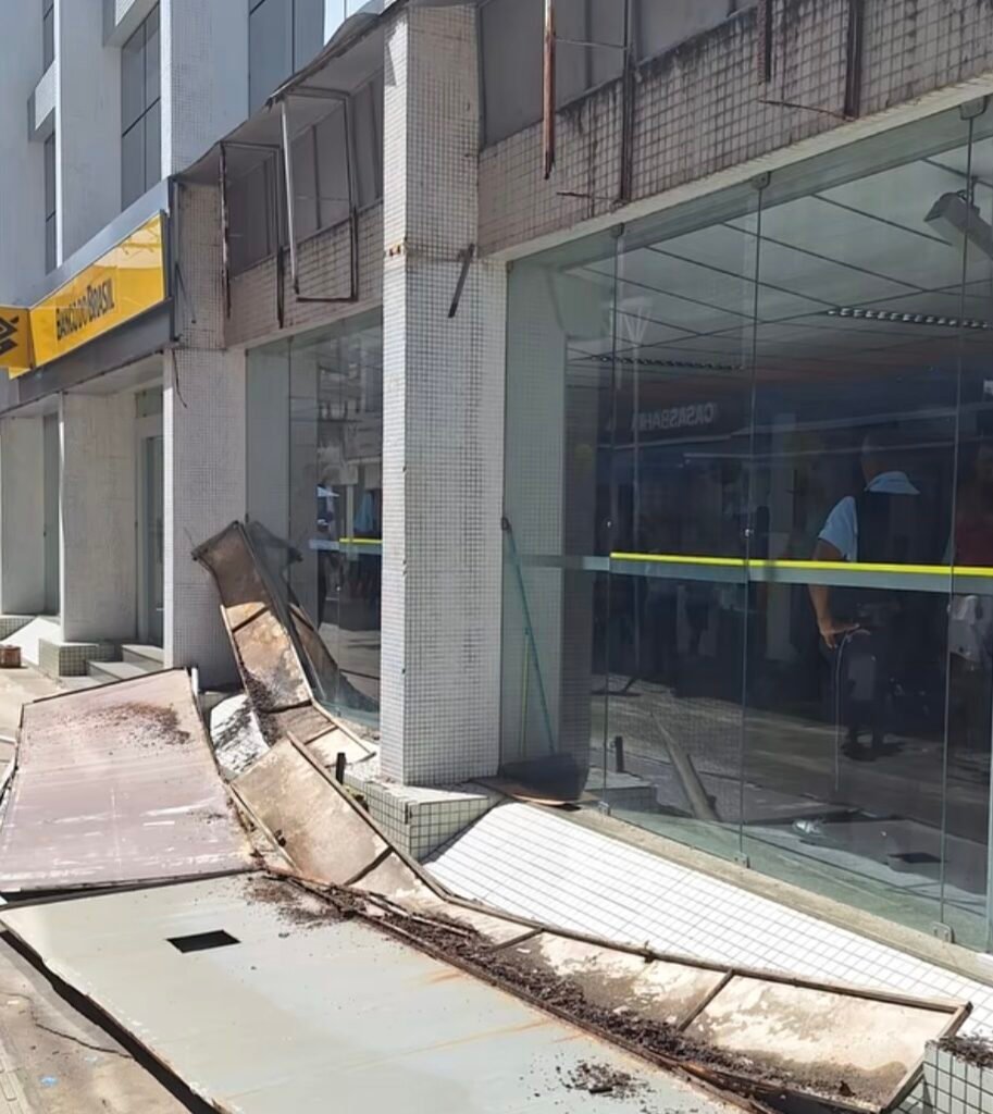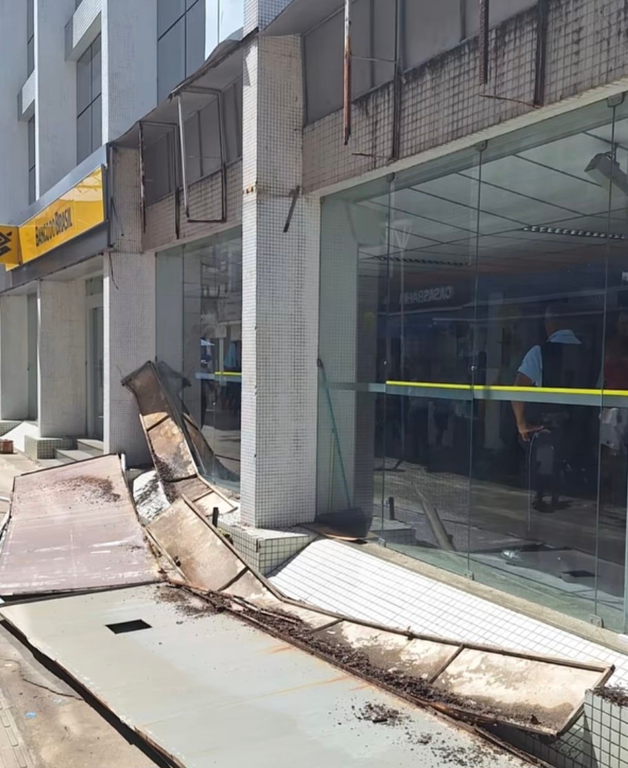 ​Quase tragédia – ​Relatos de testemunhas indicam que o incidente por muito pouco não se transformou em uma tragédia. Uma trabalhadora que atua nas proximidades da agência quase foi atingida pelos escombros.