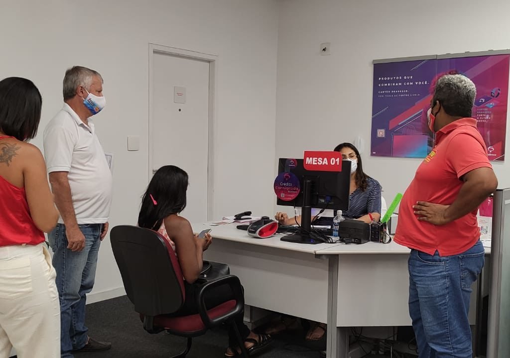 Dirigentes sindicais durante visita ao Bradesco de Camamu